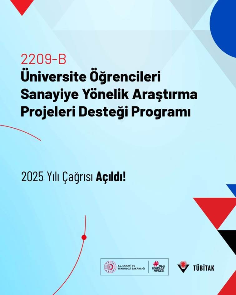 2209-B Üniversite Öğrencileri Sanayiye Yönelik Araştırma Projeleri Desteği Programı çağrı metni ve detaylı bilgi için tıklayınız.